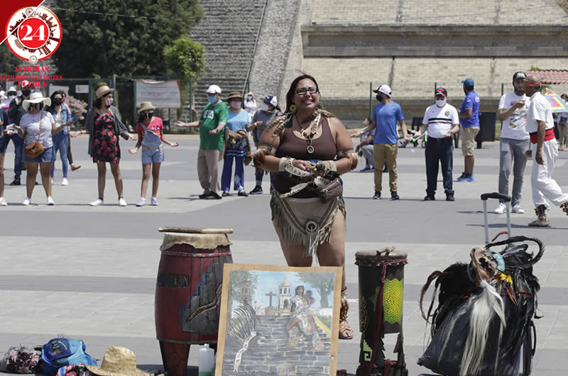 Ataviados con camisetas blancas y sombreros de palma, personas de todas las edades y de todos los grupos sociales se instalaron en la explanada ante el cierre del Centro Ceremonial, debido a la contingencia sanitaria por la Covid-19.