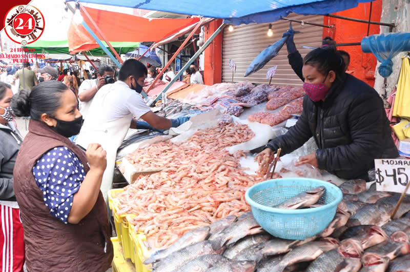Los poblanos acudieron este Jueves Santo a comprar pescados y mariscos ante la restricción de la iglesia católica de no consumir carnes rojas.