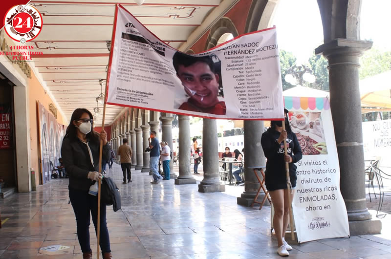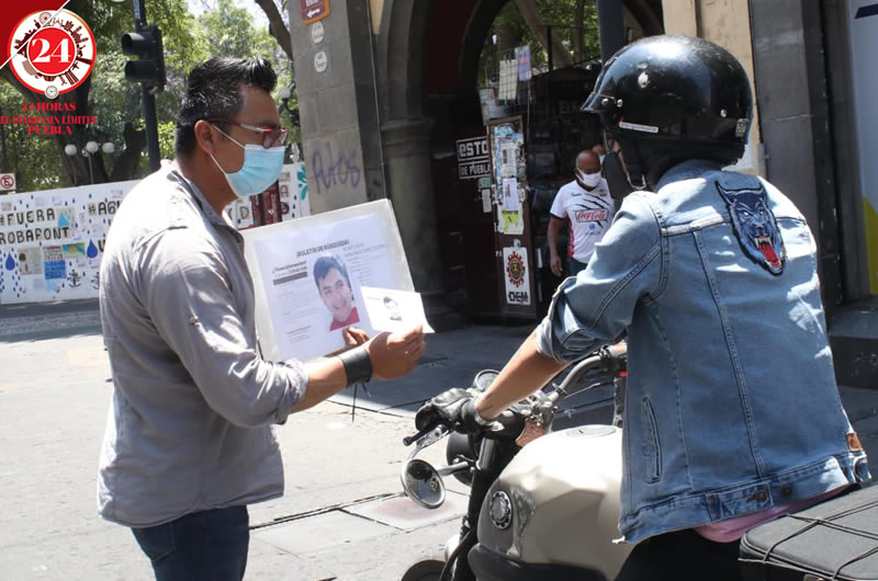 Los familiares acudieron a esta zona del Centro Histórico y repartieron volantes con la fotografía y datos del joven, además de solicitar a los poblanos compartir en redes sociales dicha información que ayude localizarlo.