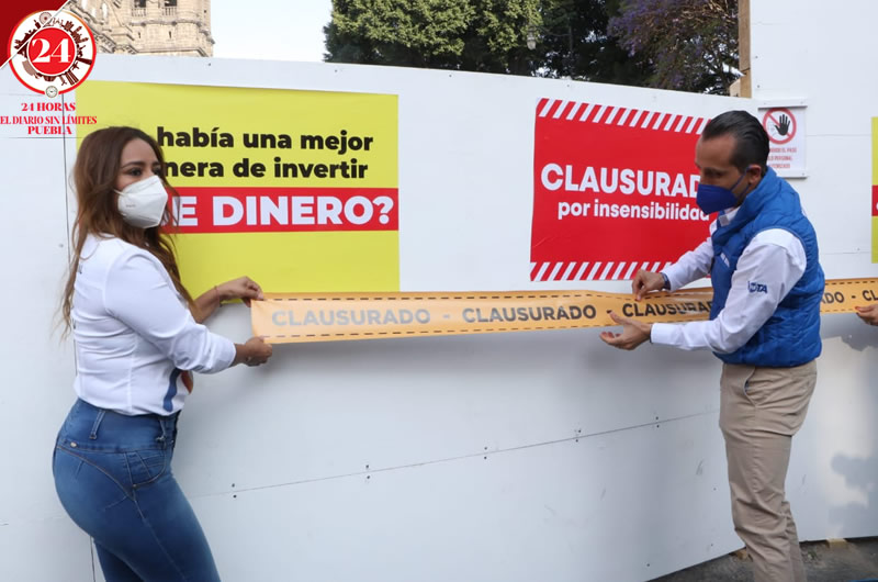 Las obras del obras del Zócalo de Puebla fueron clausuradas simbólicamente por los candidatos a diputados federales por el municipio de Puebla que integran la alianza “Va Por México”, conformada por el PAN, PRI y PRD, al considerarlas innecesarias y mal diseñadas.