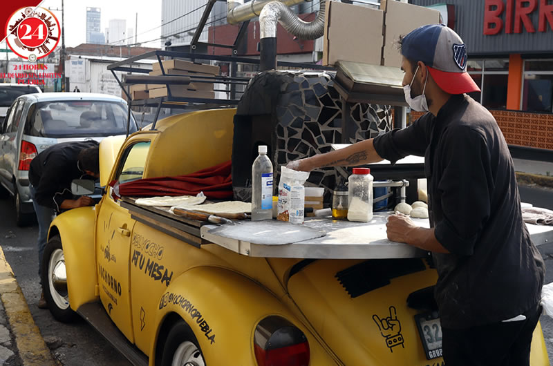 Se trata de Miguel Vázquez, quien elabora pizzas artesanales en un horno de leña y con el lema “Del vocho a tu mesa”, recorre todos los días varios punto de la capital, la 31 Poniente y 25 Sur, para ofrecer su producto.
