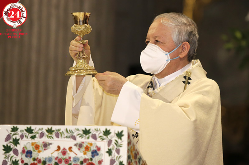 Durante la celebración Eucarística del Jueves Santo, Monseñor Víctor Sánchez Espinosa pidió por los fallecidos a causa pandemia en Puebla.