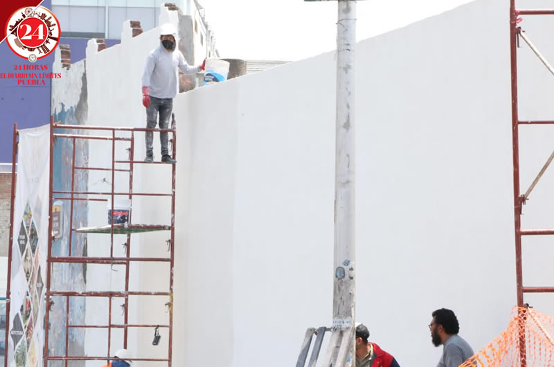 En un recorrido realizado por 24 Horas, se pudo observar que personal labora en este muro, el cual ya fue pintado de blando..