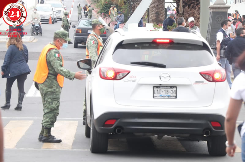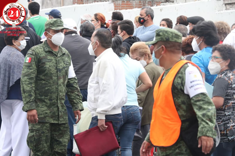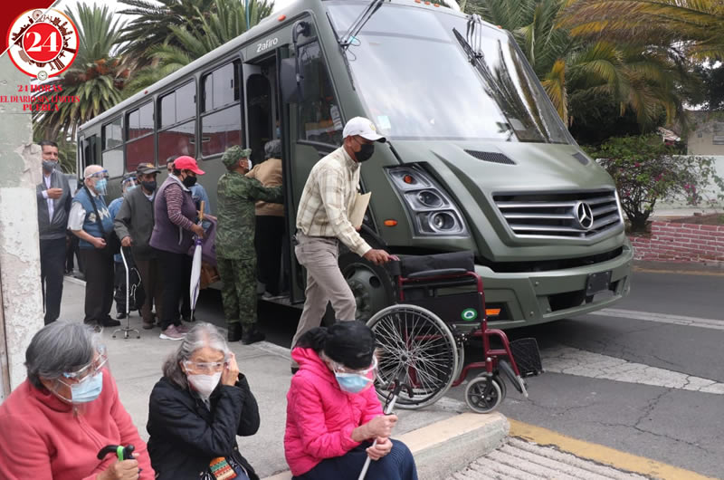 Militares y cadetes ayudaron a las personas de la tercera edad durante la jornada de vacunación contra Covid-19 que se lleva a cabo hasta en la 25 Zona Militar.