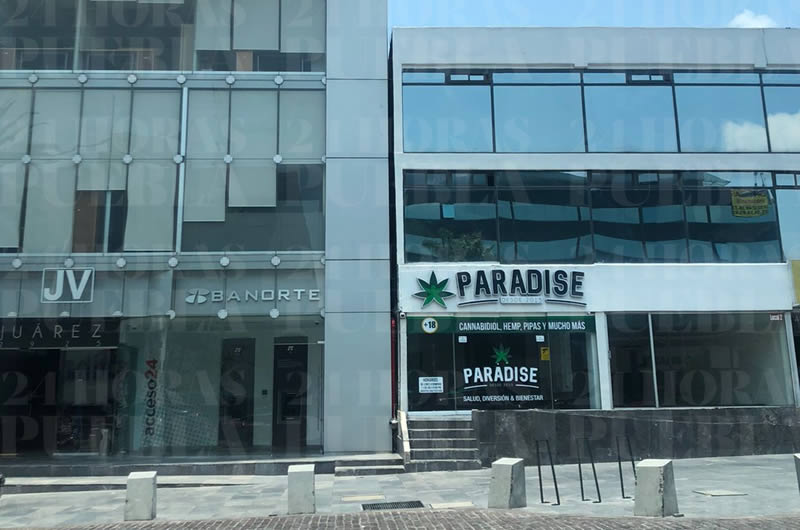 En la avenida Juárez se localiza la primera tienda de cannabis en Puebla, en la que se puede adquirir cannabidiol, pipas, entre otros productos.