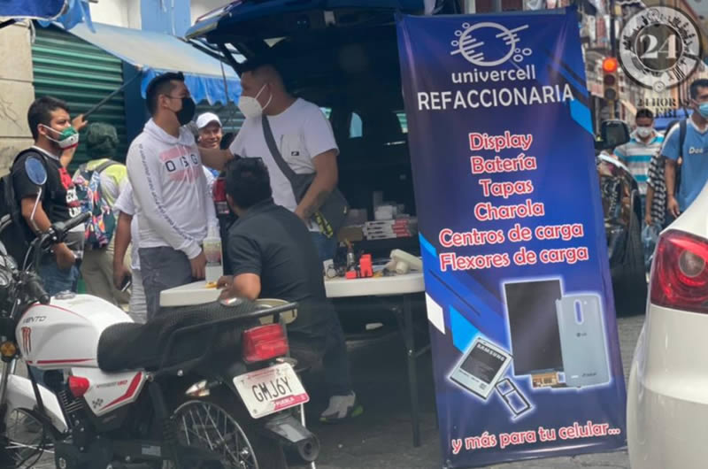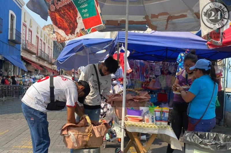 En medio de la pandemia de Covid-19, los informales venden sin ningún protocolo de sanidad aguas frescas, cócteles de fruta, chalupas, memelas, carnitas, tlayoyos, tortas, mole de panza, alias, pizzas, tortas de nata y hasta filetes de pescado.