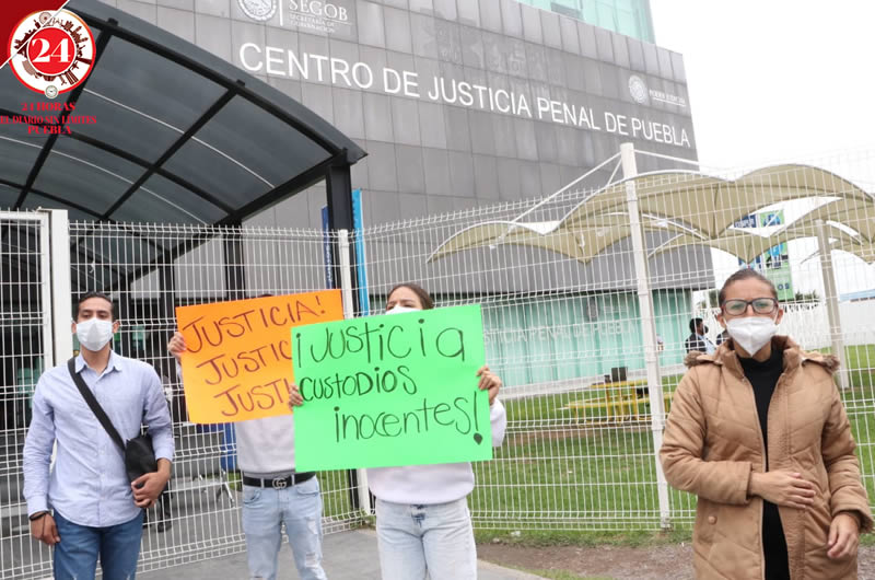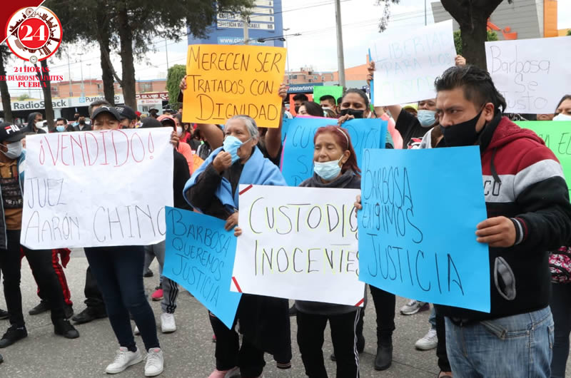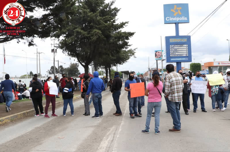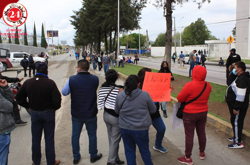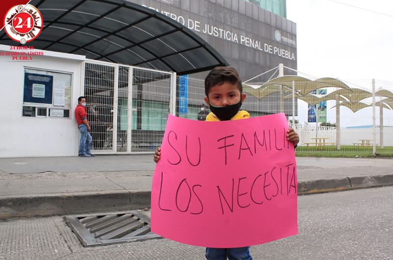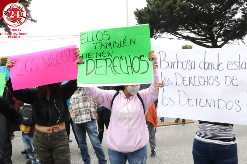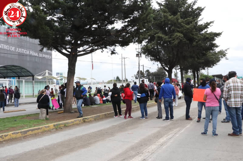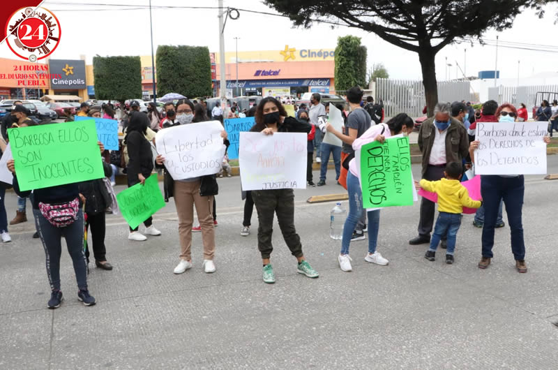 Familiares de los policías detenidos por la fuga de Felipe N., El Pirulí, del Cereso de San Miguel, cerraron la 11 sur a la altura del Centro de Justicia Penal de Puebla, exigiendo que se libere a los uniformados.