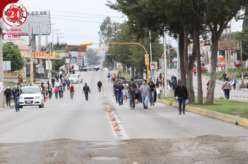 Debido al bloqueo, los usuarios de la Línea 2 de RUTA tienen que caminar hacia el paradero de la unidad habitacional San Bartolo para poder trasladarse con dirección a al Centro de la ciudad.