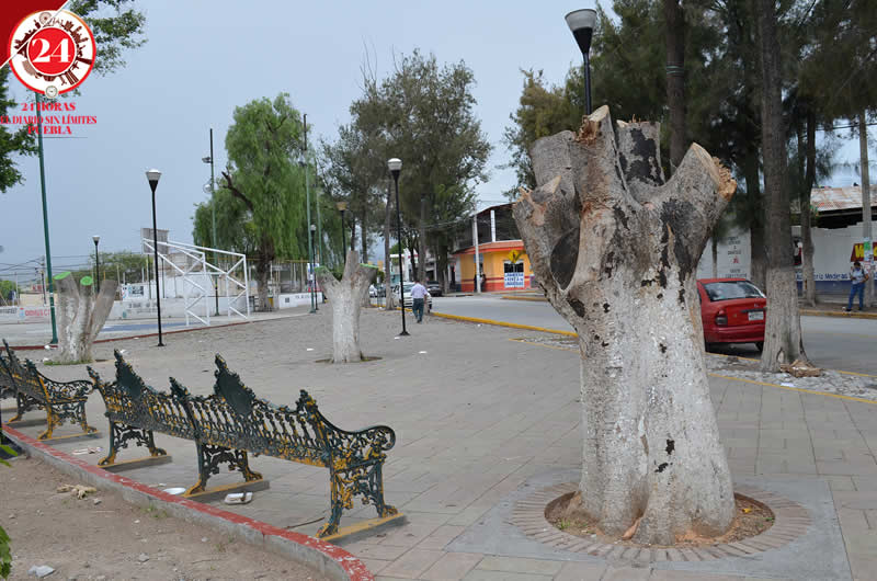 El ayuntamiento de Tehuacán derribó 22 árboles de laureles de la India en tres parques del municipio, debido a que estaban infectados con hongo negro.