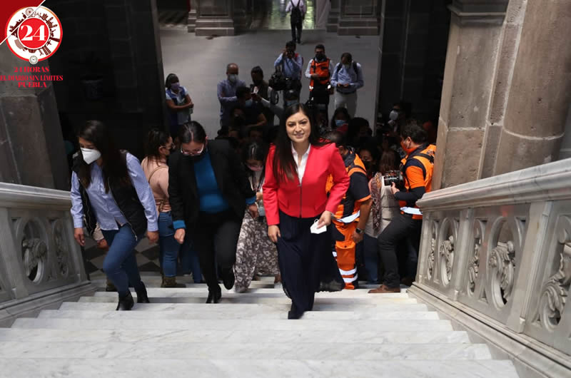 La alcaldesa Claudia Rivera Vivanco, también participó en este ejercicio cívico desde el Palacio Municipal.