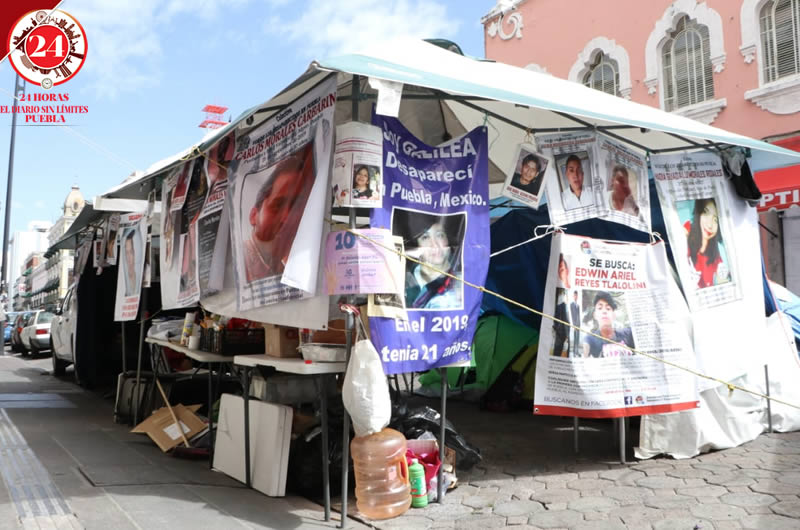 Los integrantes de este y otros colectivos se resguardan en casas de campaña y han colocado las fotografías de sus hijos, hijas o hermanos a los que siguen buscando.