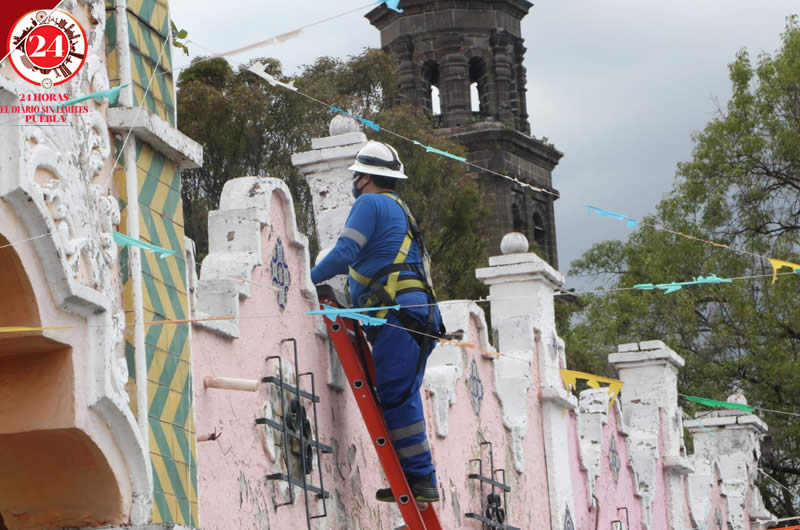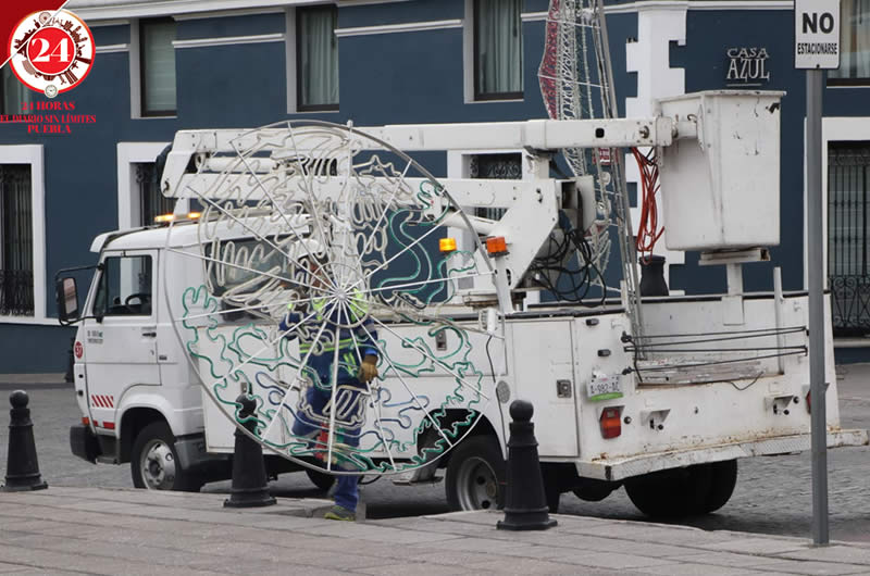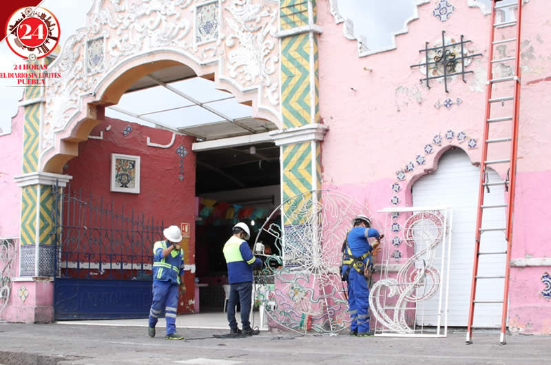El ayuntamiento de Puebla mantiene los trabajos de instalación de los mil 700 adornos luminosos en diversos puntos de la ciudad, previo al inicio del mes patrio.