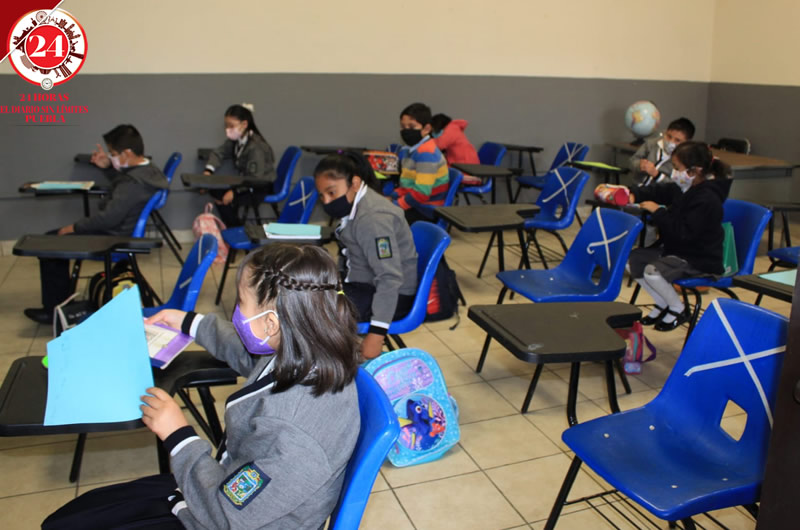 Asimismo, los pequeños asistieron con cubrebocas y caretas, además de que en las aulas se implementó un protocolo de sana distancia, por ello, un escritorio fue habilitado y otro no, evitando así que los alumnos estén juntos.