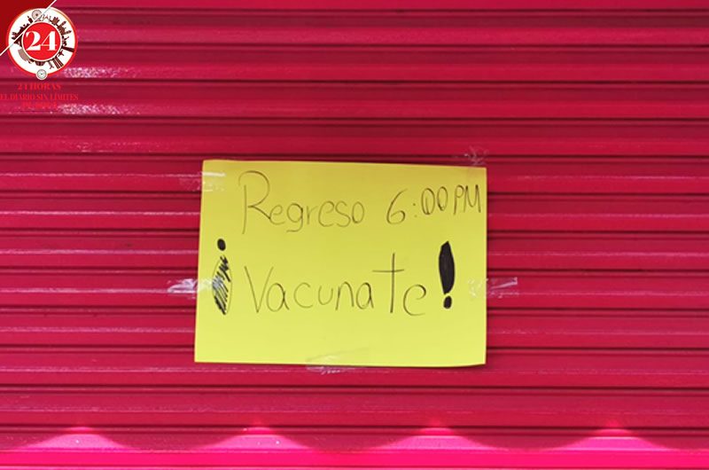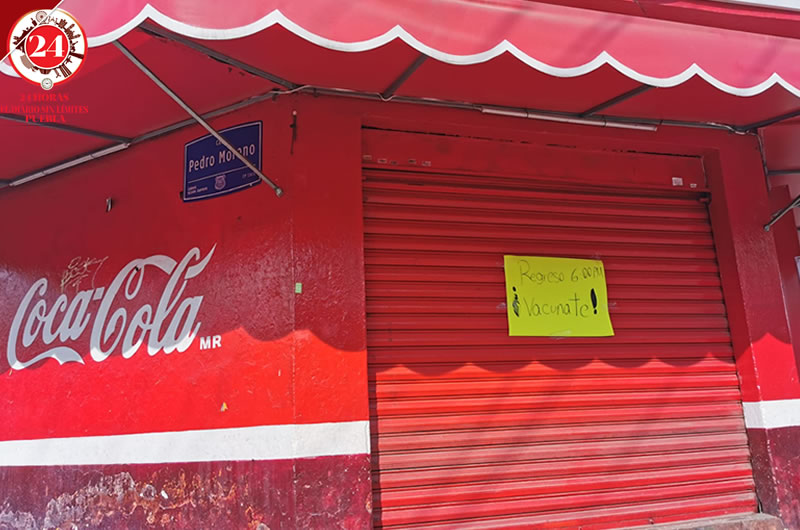 En abarrotes Chely de la colonia Vicente Guerrero, en la ciudad de Puebla, sus dueños bajaron las cortinas por que se fueron a vacunar contra el Covid-19 y hacer conciencia de lo importante que es evitar los contagios.