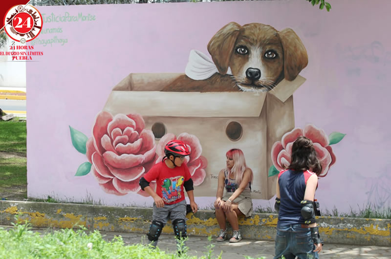 Colectivos y artistas urbanos exigen justicia para Monse, por lo que dibujaron animales, flores, y rostros de mujeres, así como el de ella, luego de que el pasado 14 de agosto se cumplieron 5 meses de su muerte.