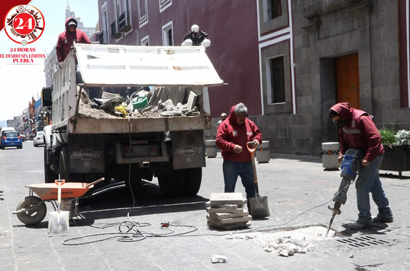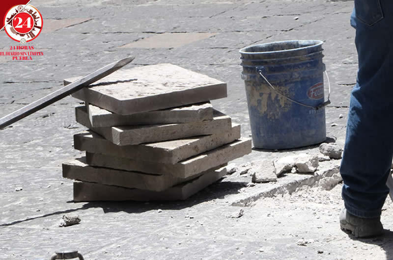 Personal del ayuntamiento de Puebla realizaron trabajos para reemplazar lajas dañadas en el Centro Histórico.La tarde del viernes se observó a los trabajadores realizado las reparaciones en la calle 2 sur entre 3 y 5 oriente.