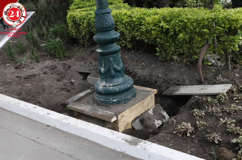 Además, una de las luminarias quedó con una pequeña excavación alrededor.