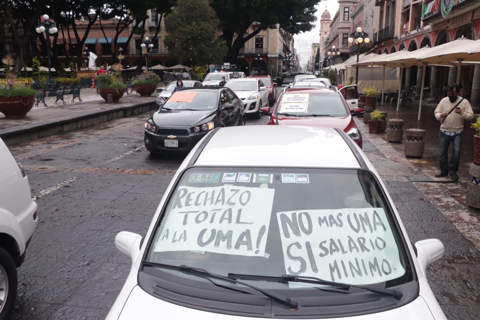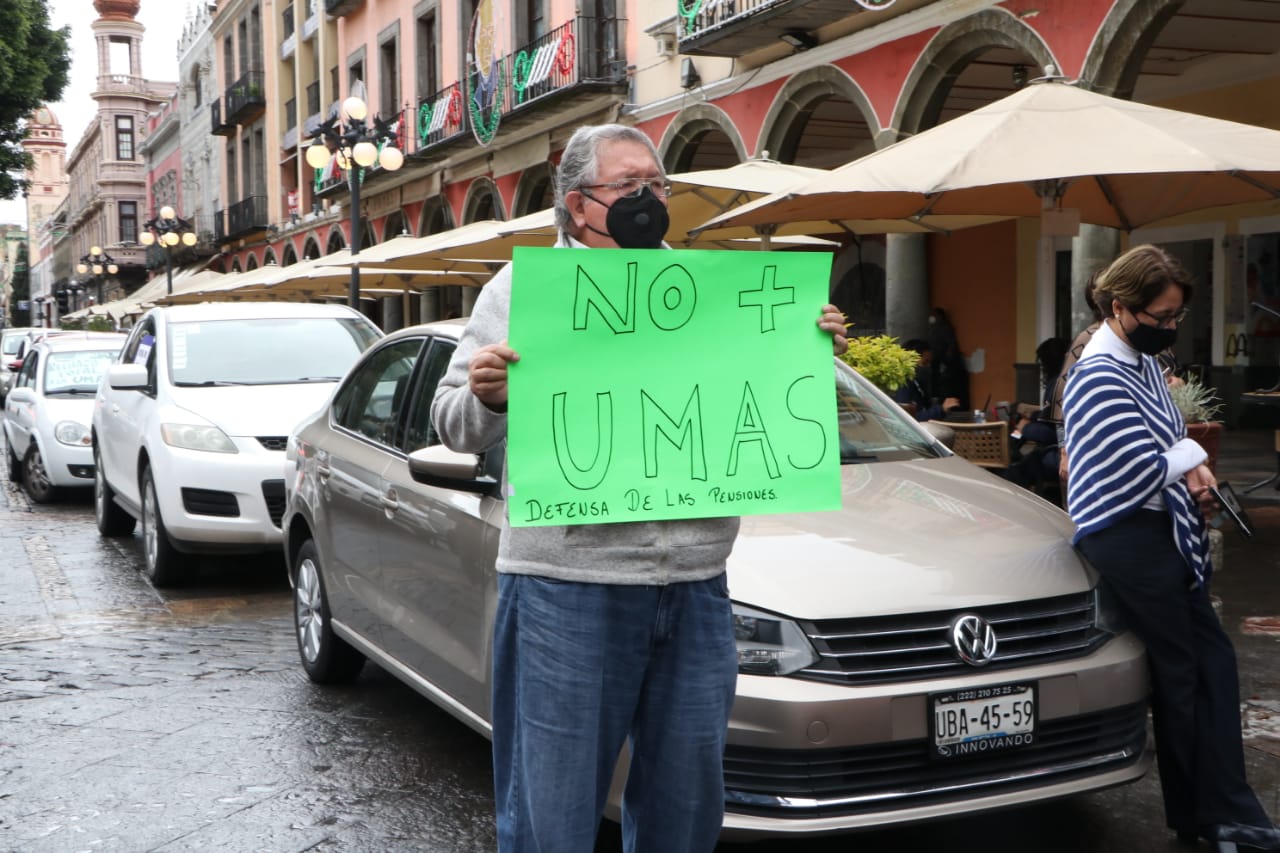 Los integrantes de la Agrupación Defensa de las Pensiones en Puebla (ADEP) se manifestaron en el Zócalo de Puebla para exigir el pago de los apoyos con base en el salario mínimo y no bajo la Unidad de Medida y Actualización (UMA).