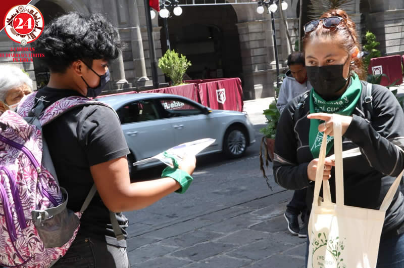 La secretaria para la Igualdad Sustantiva del municipio de Puebla, Norma Pimentel, junto con colectivos e integrantes de la sociedad civil repartieron kits en una jornada informativa para sensibilizar a la ciudadanía sobre los derechos sexuales y reproductivos.