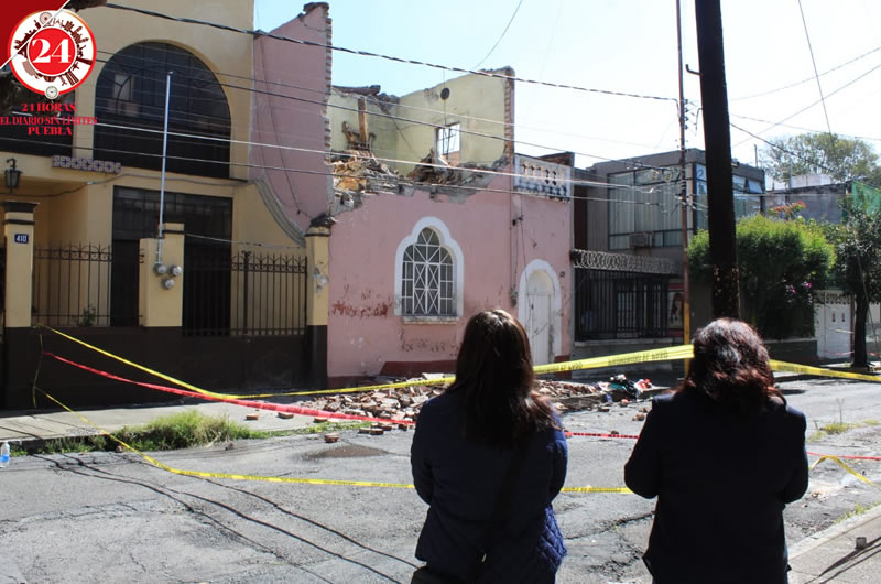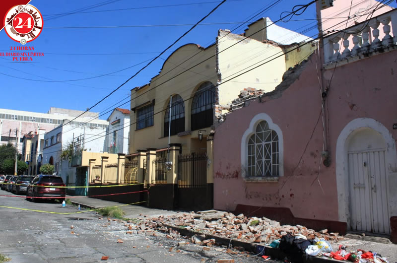 Las fachadas de 2 viviendas colapsaron luego de las fuertes lluvias de los últimos días en el Barrio de La Luz y colonia San Francisco, en la capital poblana.