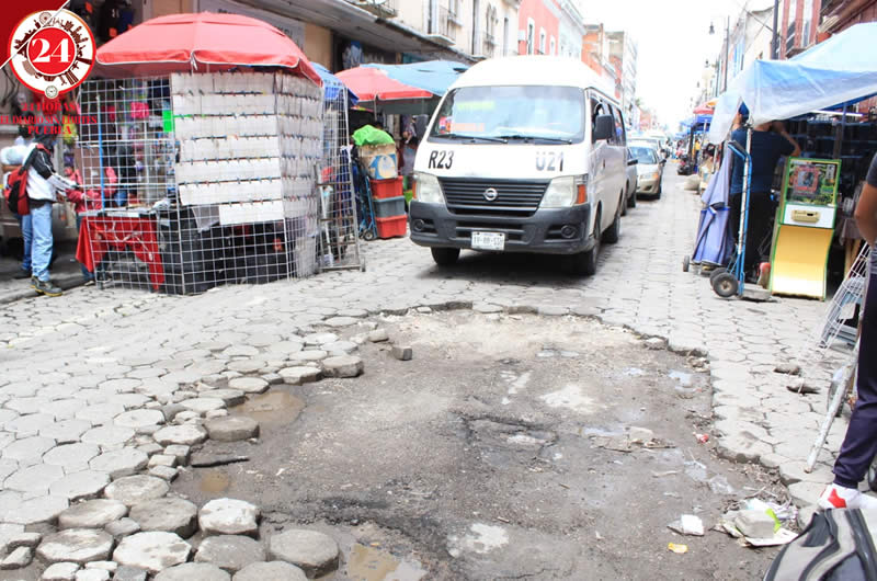 Además, a la altura de la 5 de Mayo, hay una parte que se quedó sin dichos adoquines, y las lluvias de los últimos días contribuyen a que se hagan charcos por donde transitan decenas de poblanos que acuden a trabajar o a realizar sus compras.