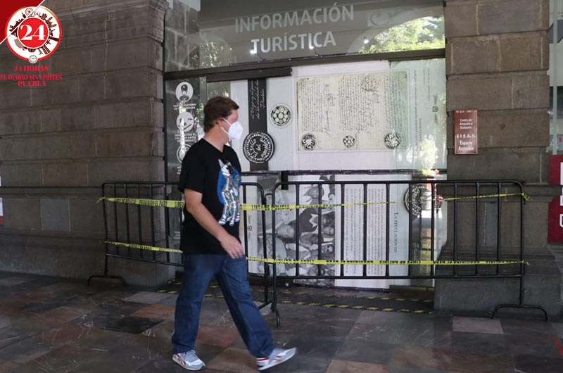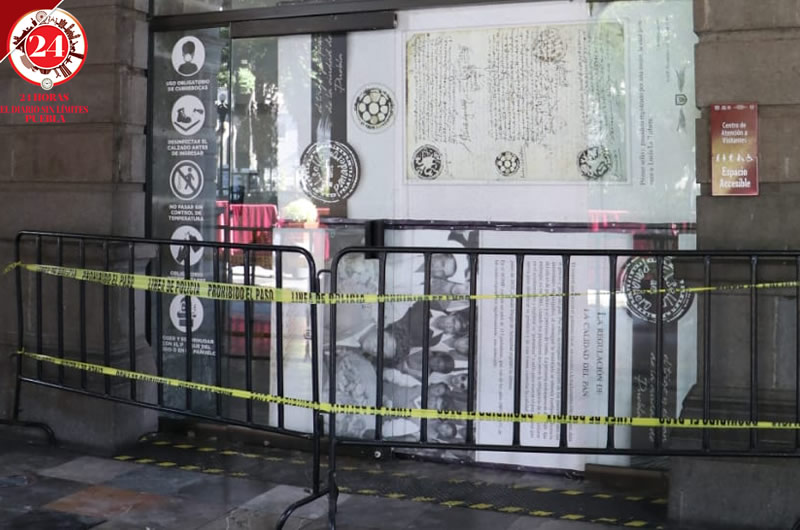 Luego de que la noche del lunes, trabajadores sindicalizados se manifestaron afuera del Palacio Municipal contra la entrega de bases que pretende realizar la alcaldesa, Claudia Rivera, la puerta de la oficina de información turística quedó destrozada.