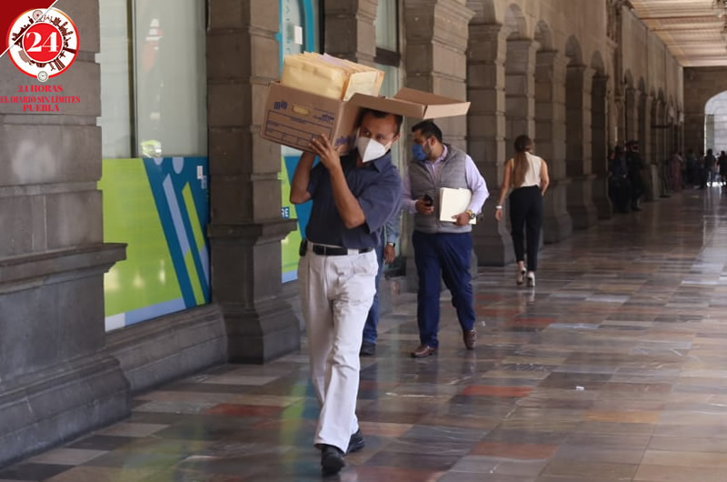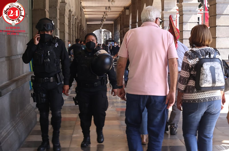 Mientras que el perímetro del Palacio Municipal estaba rodeado por patrullas, camionetas, autobuses y moto patrullas la de la Secretaría de Seguridad Ciudadana, además de la unidad blindada para resguardar la sesión de cabildo, la salida de regidores y de Claudia Rivera en su último día de gobierno.
