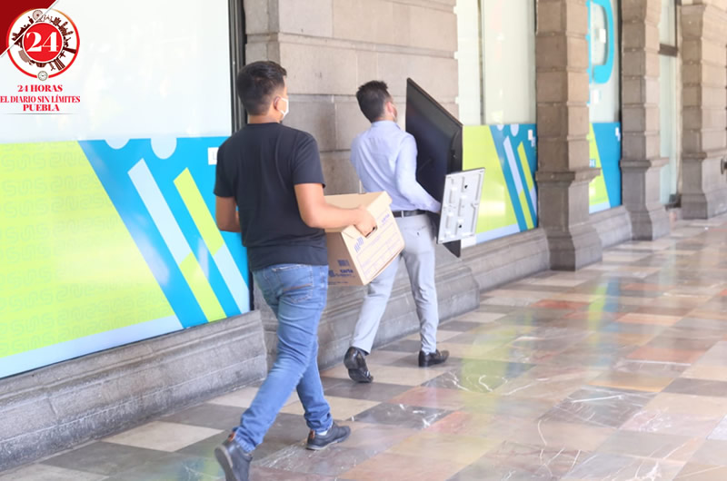 Entre lo que se asomaba de las cajas de cartón que eran cargadas entre brazos de empleados del ayuntamiento, había sobres cerrados amarillos con documentación, también paquetes de comida, computadoras y una enorme pantalla de televisión.