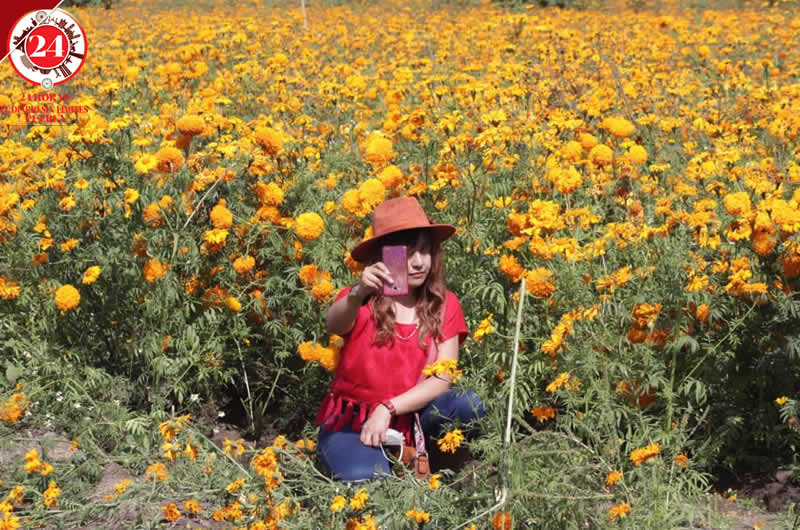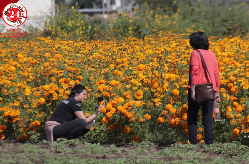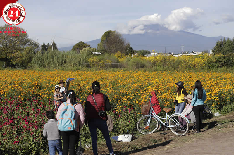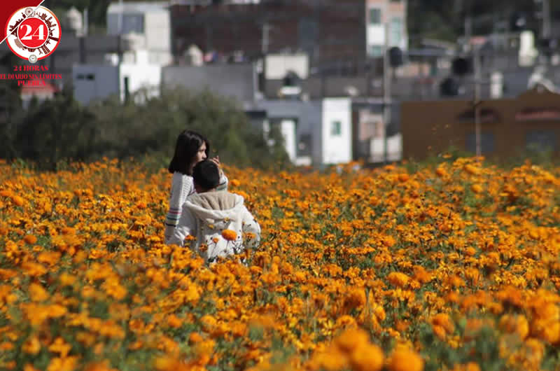 Durante este fin de semana, se observó que en estos terrenos con flor de cempasúchil y de terciopelo se encuentran fotógrafos que cobran 50 pesos por una postal.