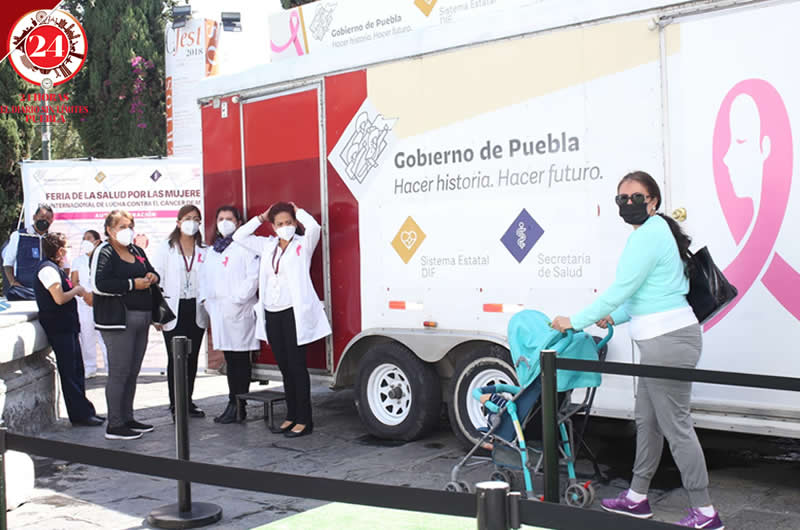 La Feria de la Salud por las Mujeres se lleva a cabo en la Explanada del Teatro Principal de la capital poblana.