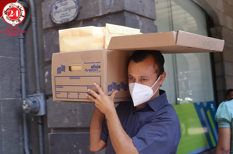 En un recorrido que realizó 24 Horas por inmediaciones del Zócalo de Puebla, se observó un cerco en el Palacio Municipal donde trabajadores trasladaban cajas con la documentación de la administración que termina el último minuto de este 14 de septiembre.