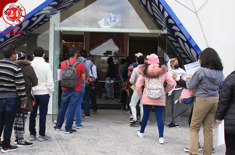 El Centro Expositor en la zona de Los Fuertes, es uno de los 8 puntos masivos de vacunación que se habilitaron en la capital, a donde han acudido decenas de jóvenes.
