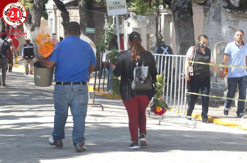 Los visitantes siguen todas las recomendaciones sanitarias que el Gobierno municipal dio a conocer la semana pasada, como el uso obligatorio de cubrebocas, la entrada de solo 4 personas por tumba y la estancia de 30 minutos.
