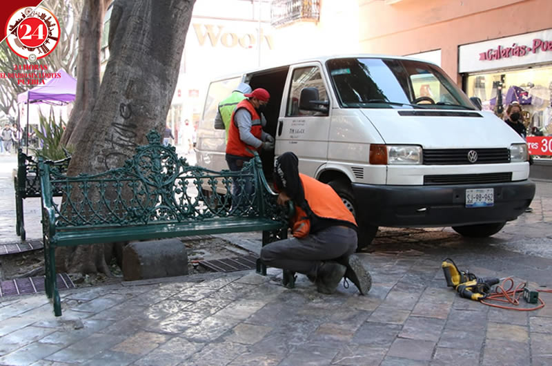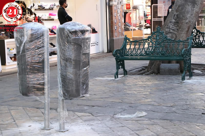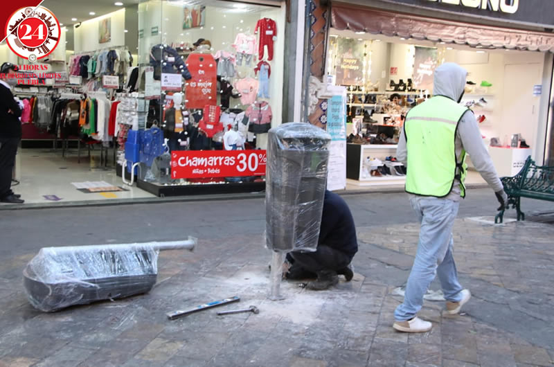 El Gobierno municipal instaló más bancas y botes de basura en la calle 5 de Mayo, previo al incremento de usuarios en las tiendas del Centro Histórico.