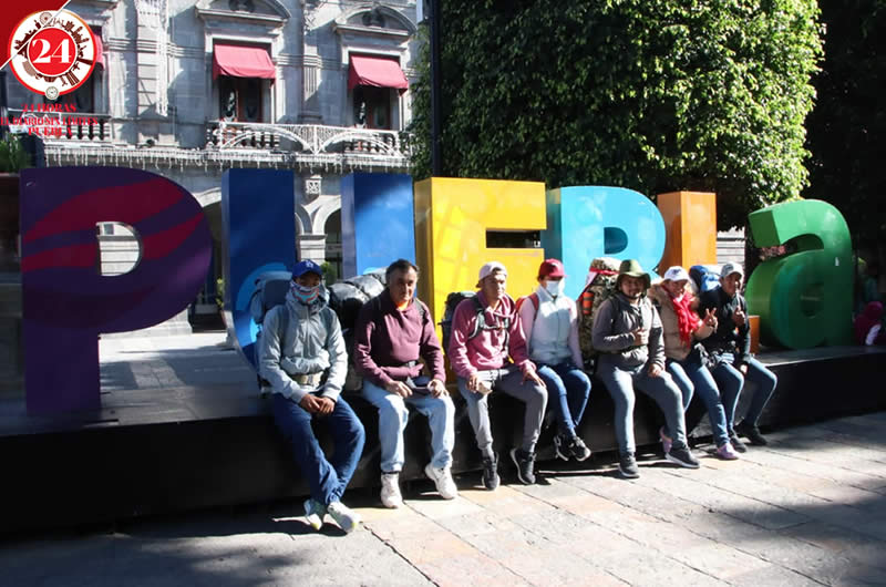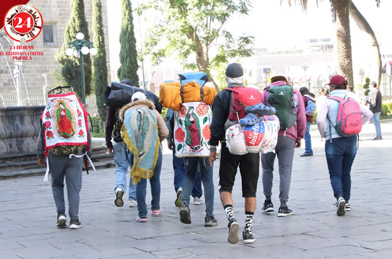 Peregrinos guadalupanos proveniente del municipio de Fortín, en Veracruz, visitaron en Zócalo de Puebla en su trayecto hacia la Basílica de Guadalupe, en la Ciudad de México.