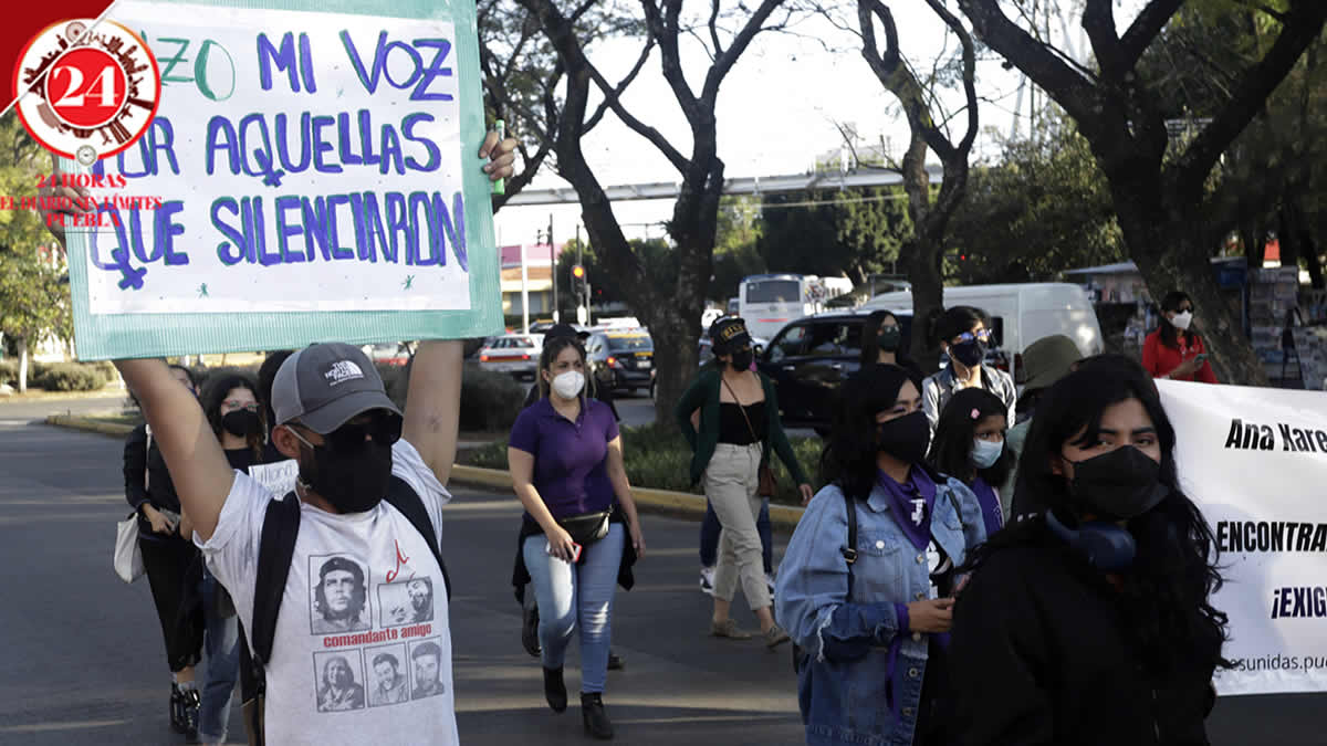 Colectivas feministas marcharon la tarde del sábado desde la Fiscalía General del Estado hacia el Zócalo de Puebla, para exigir justicia por feminicidios, casos de violencia de género y ciberacoso.