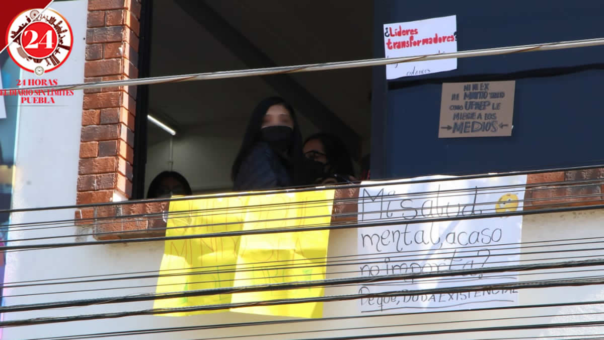 Alumnos de la preparatoria Santiago de la UPAEP, protestaron la mañana de este viernes para pedir a las autoridades mayor seguridad en las instalaciones y atender la salud mental de los estudiantes, luego de lo sucedido el jueves.