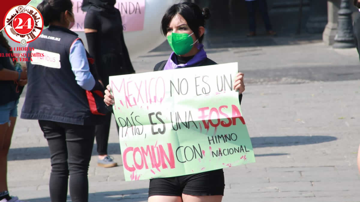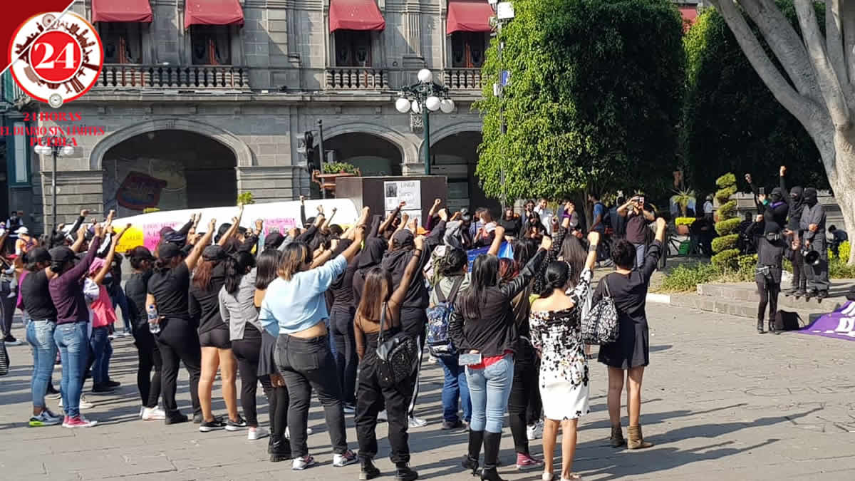 Colectivas feministas se manifestaron la tarde del miércoles en el Zócalo de Puebla y declararon luto nacional por las mujeres desaparecidas y feminicidios.