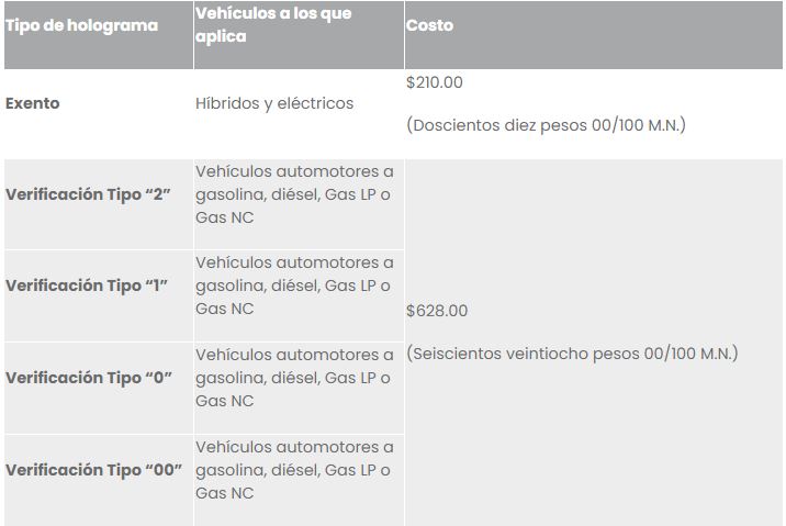 De acuerdo a la información, los costos del trámite para revisar los automóviles que circulan en Puebla va de los 210 pesos para tipo de holograma exento, es decir híbridos y eléctricos, para los tipos 1, 2, 0 y 00 será de 628 pesos.