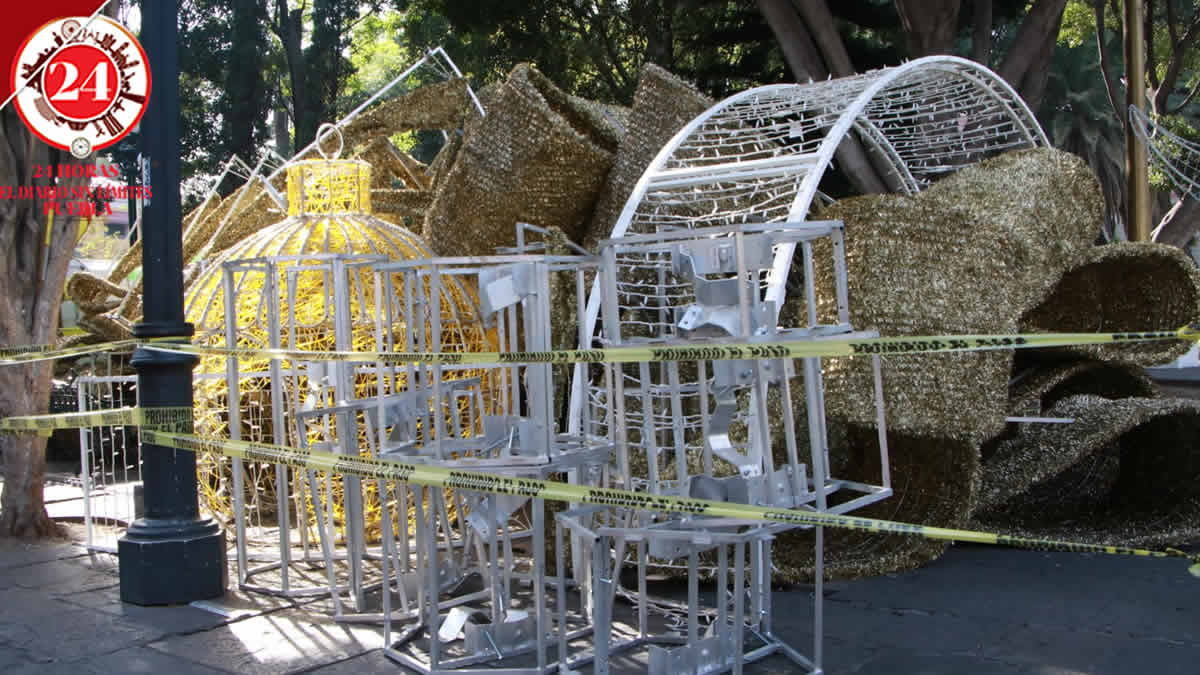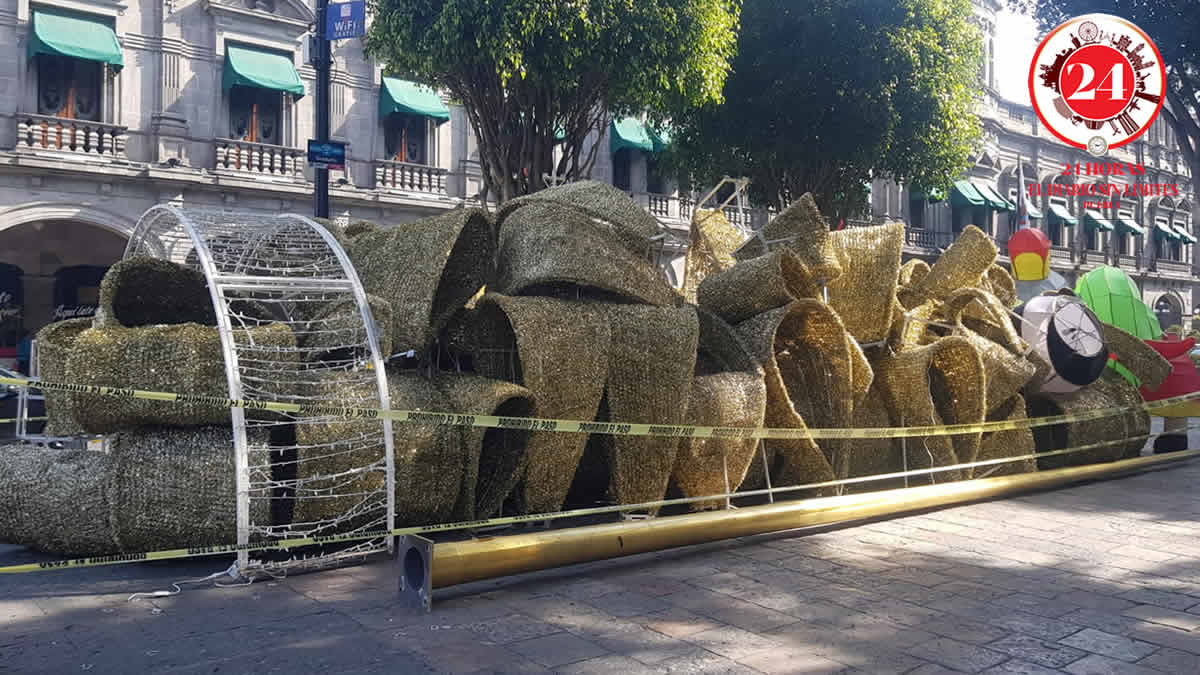 El ayuntamiento de Puebla comenzó el retiro de adornos navideños en el Centro Histórico de Puebla, pues el miércoles por la noche desmontó el árbol gigante.