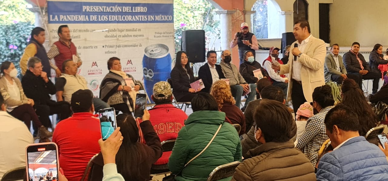 A invitación de liderazgos de Tochtepec, el senador de Morena por Puebla Alejandro Armenta acudió a ese municipio a presentar su libro "La Pandemia de Los Edulcorantes en México" con la finalidad de fortalecer la campaña de concietización sobre los hábitos alimenticios sanos.