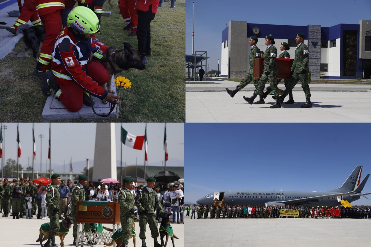 La Secretaría de la Defensa Nacional (SEDENA) rindió un homenaje en México al perrito rescatista Proteo quien murió en Turquía.