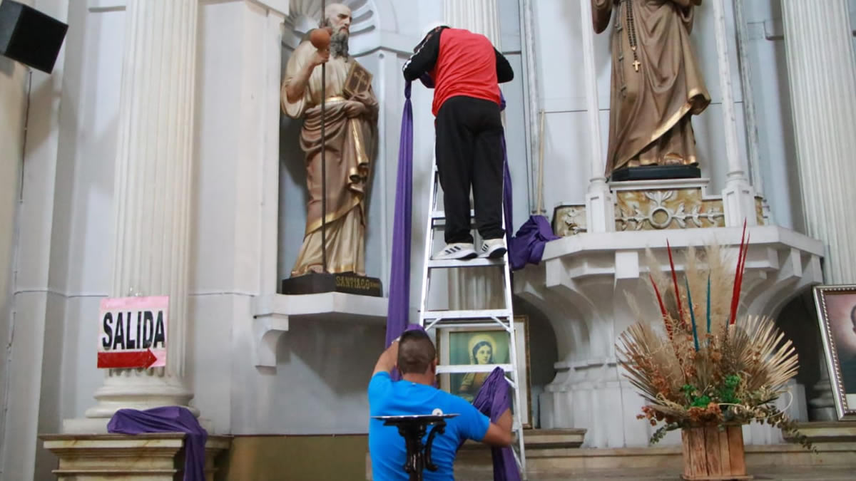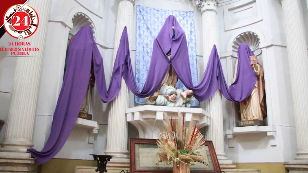En un recorrido que realizó 24 Horas Puebla por la capital, se observó que en la iglesia de la Soledad el jueves cubrieron las imágenes previo a la crucifixión de Jesús.