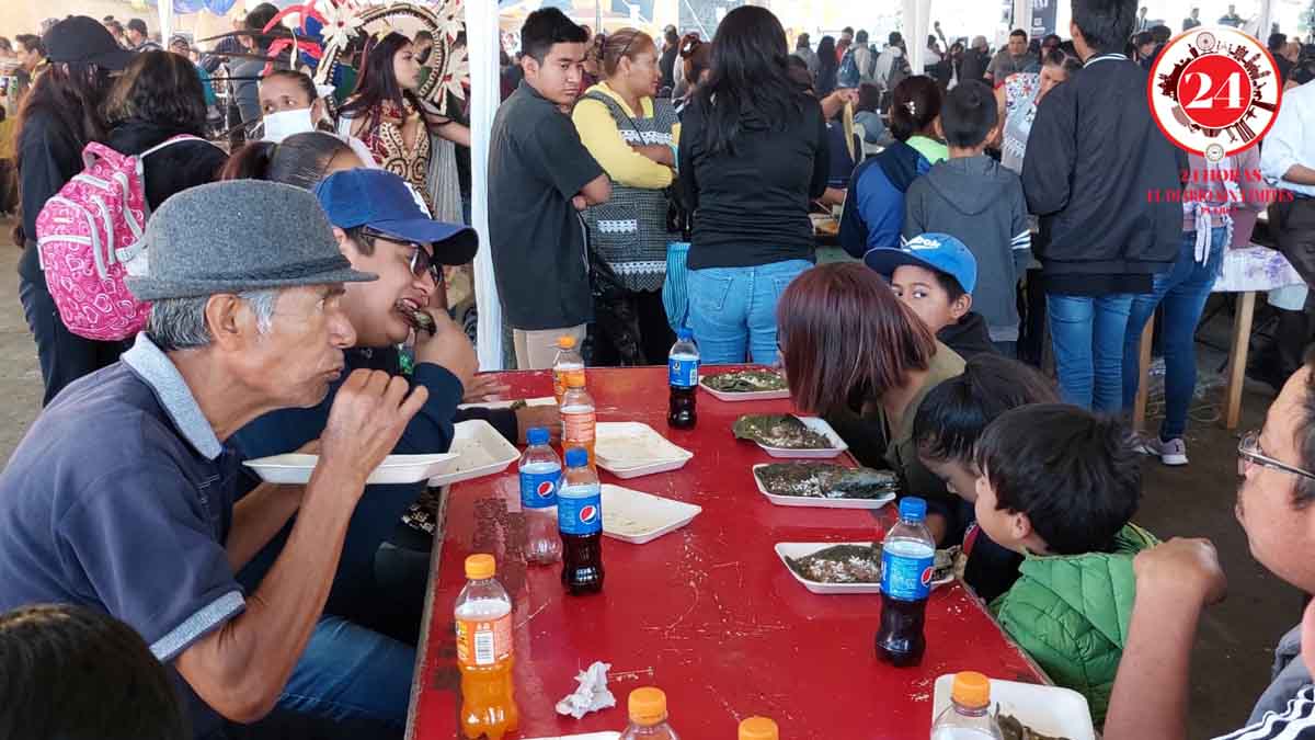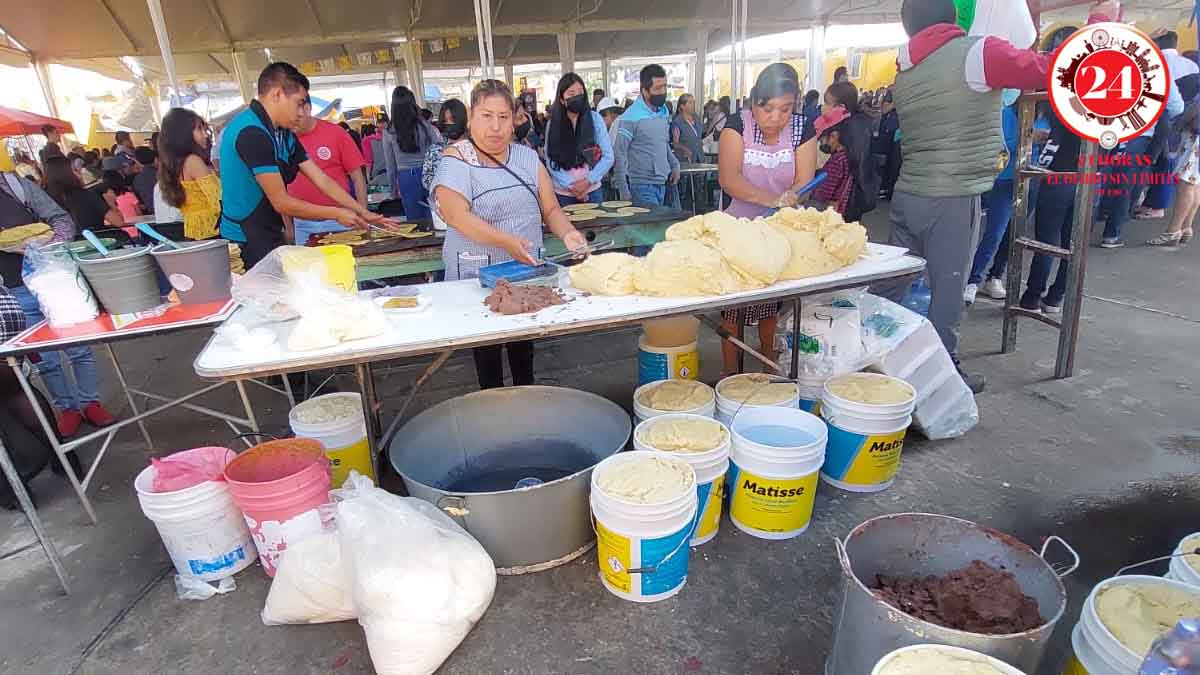 Para afilar el diente se prepararon 4 toneladas de maíz blanco y azul, 2 toneladas de frijol ayocote, 1 tonelada de manteca, 1.5 toneladas de queso y más de mil 800 litros de salsas roja y verde para preparar más de 140 mil memelas.