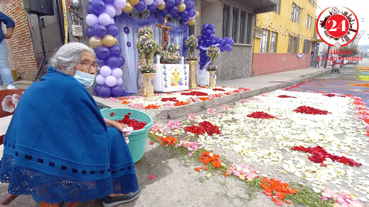 Asimismo, los pobladores colocaron alfombras de aserrín en las calles por donde pasó la Procesión.