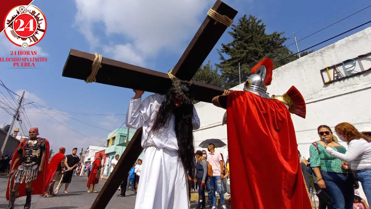 Por la mañana se llevó el Viacrucis de Viernes Santo en la colonia Xonaca, donde los vecinos acompañaron a los actores que representaron a Jesús de Jesús de Nazaret, apóstoles y soldados romanos.