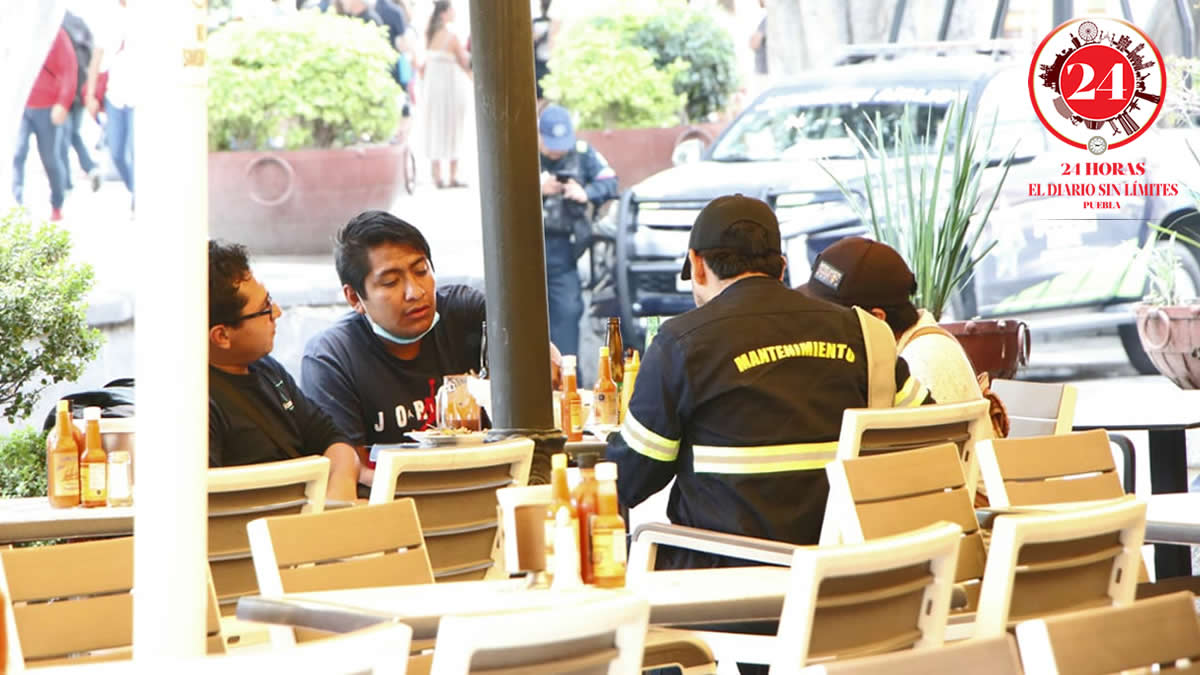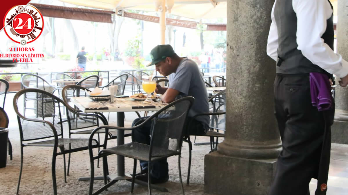 En un recorrido de 24 Horas Puebla por las calles principales de la ciudad, se observó que los restaurantes ubicados en los portales Hidalgo, Morelos e Iturbide, que se encuentran frente al Zócalo, continuaron con la instalación de mesas y sillas para ofrecer sus servicios al aire libre, mismos que son ocupados por los clientes que consumen los alimentos.