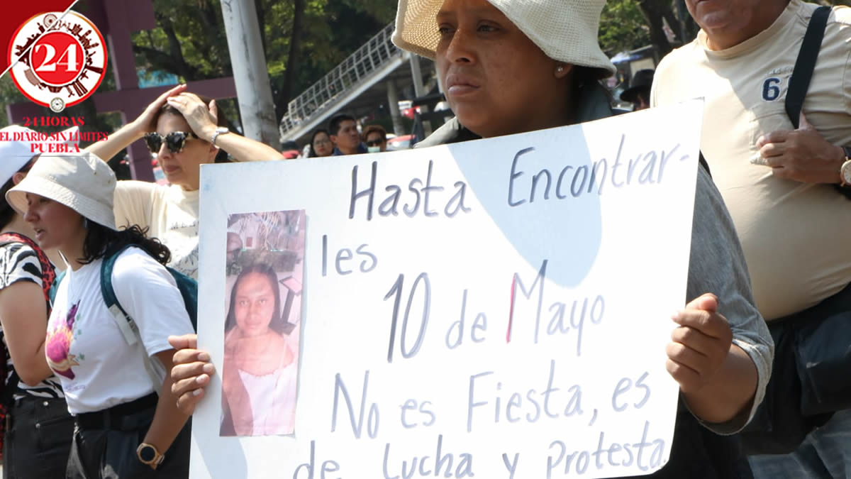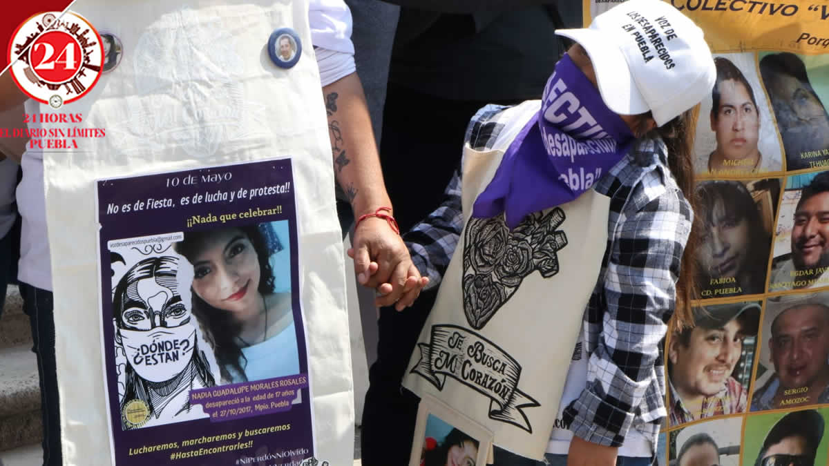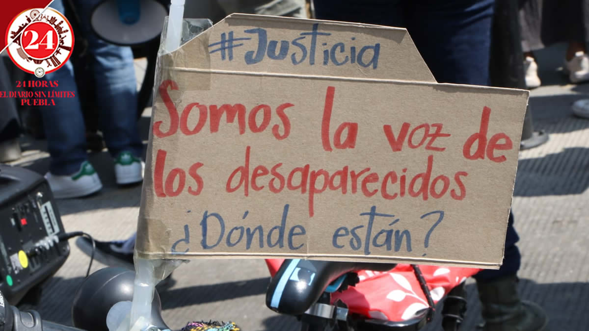 Con carteles y fotografías de sus seres queridos, así como cánticos, los integrantes del colectivo protestaron previo a la marcha en las calles de Puebla.