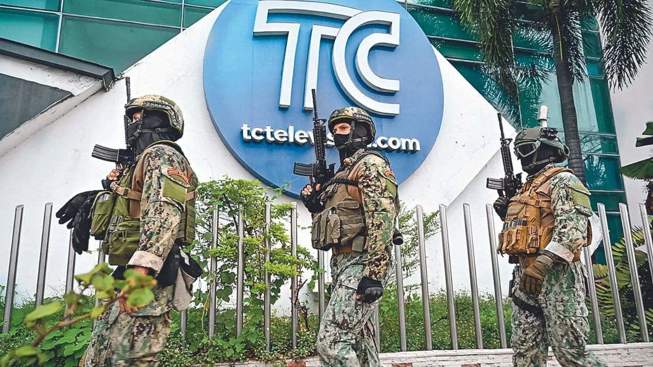 Tras el decreto del presidente Daniel Noboa, hombres encapuchados armados con fusiles y granadas irrumpieron en el canal TC Televisión en Guayaquil cuando periodistas transmitían en vivo un noticiero, lo que provocó una dramática situación que se extendió durante al menos 30 minutos hasta que intervino la policía.