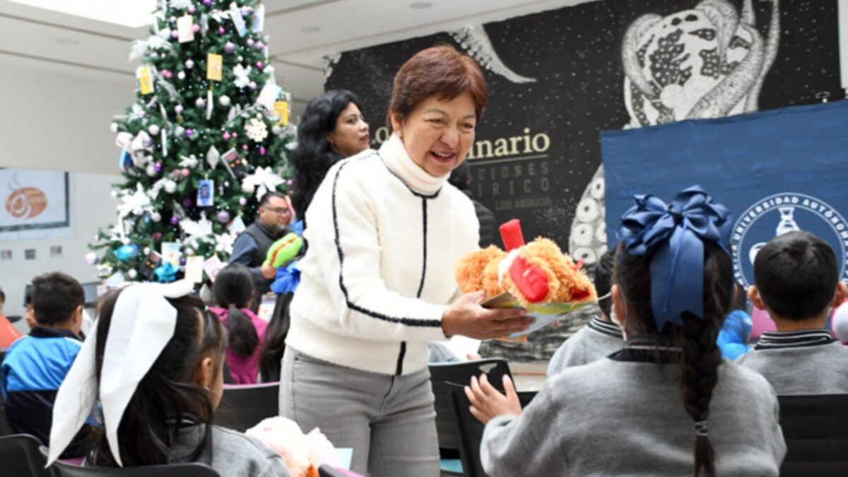 La rectora María Lilia Cedillo Ramírez entregó peluches y libros a los pequeños, destacando que estas acciones fomentan la creatividad y la lectura, además de brindar momentos de esparcimiento.